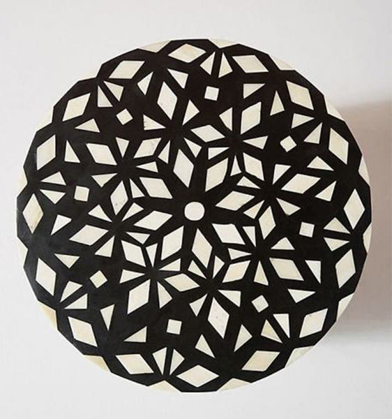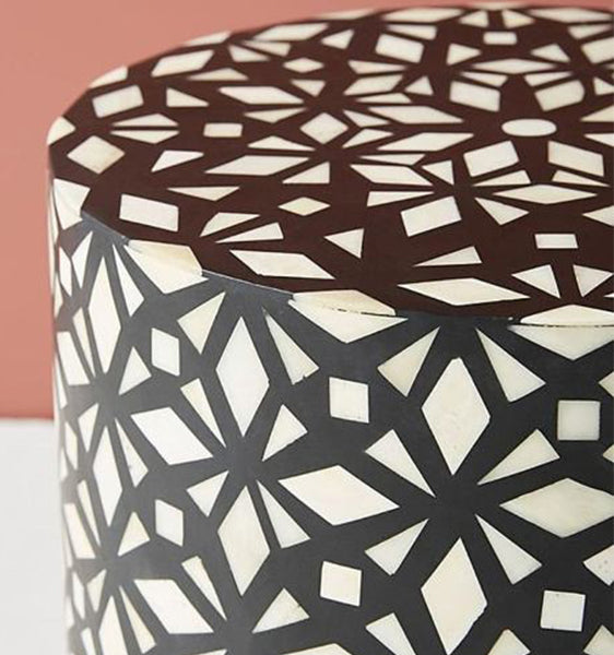 Each piece has been handcrafted in a process that can take weeks using honorably sourced Bone / Mother of Pearl. Delicately carved pieces of Bone/Mother of Pearl have been individually inlaid onto a wooden frame in an elaborate pattern. Layers of colored resin are then used to fill around the bone/mop. Finally, the backside and inside areas are painted with the matching colors.