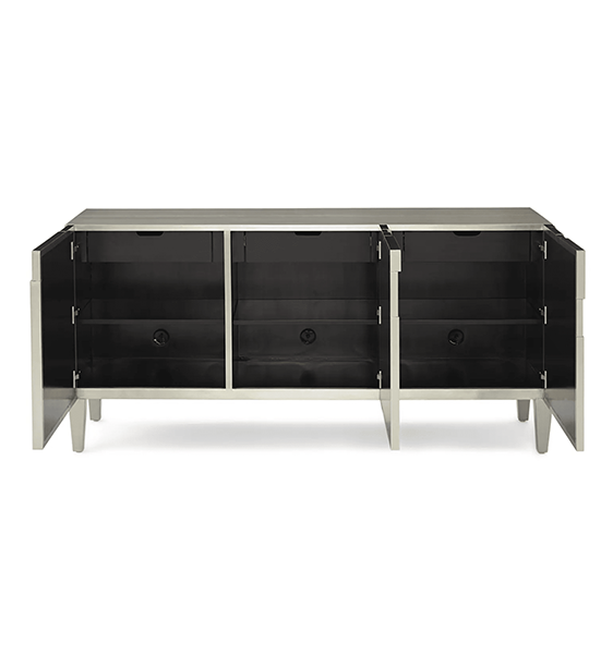 The Bella Entertainment Console is a stylish and modern piece of furniture that will elevate your living room decor. The sleek German Silver finish catches the light beautifully, creating a stunning visual effect. The console’s spacious shelves and drawers provide ample storage space for media devices, movies, and other entertainment items. Its elegant design is perfect for adding a touch of sophistication to your home. A must-have for anyone who loves luxurious and functional home decor.
