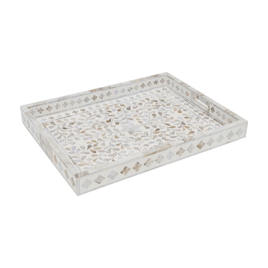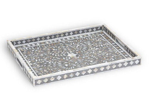 Each piece has been handcrafted in a process that can take weeks using honorably sourced Bone / Mother of Pearl. Delicately carved pieces of Bone/Mother of Pearl have been individually inlaid onto a wooden frame in an elaborate pattern. Layers of colored resin are then used to fill around the bone/mop. Finally, the backside and inside areas are painted with the matching colors.