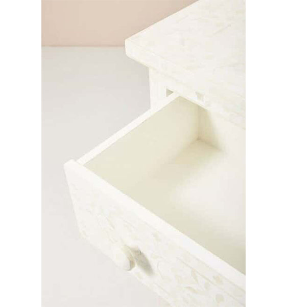 Each piece has been handcrafted in a process that can take weeks using honorably sourced Bone / Mother of Pearl. Delicately carved pieces of Bone/Mother of Pearl have been individually inlaid onto a wooden frame in an elaborate pattern. Layers of colored resin are then used to fill around the bone/mop. Finally, the backside and inside areas are painted with the matching colors.