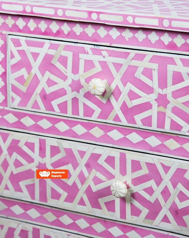 Each piece has been handcrafted in a process that can take weeks using honorably sourced Bone / Mother of Pearl. Delicately carved pieces of Bone/Mother of Pearl have been individually inlaid onto a wooden frame in an elaborate pattern. Layers of colored resin are then used to fill around the bone/mop. Finally, the backside and inside areas are painted with the matching colors.