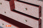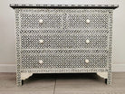 Each piece has been handcrafted in a process that can take weeks using honorably sourced Bone / Mother of Pearl. Delicately carved pieces of Bone/Mother of Pearl have been individually inlaid onto a wooden frame in an elaborate pattern. Layers of colored resin are then used to fill around the bone/mop. Finally, the backside and inside areas are painted with the matching colors.