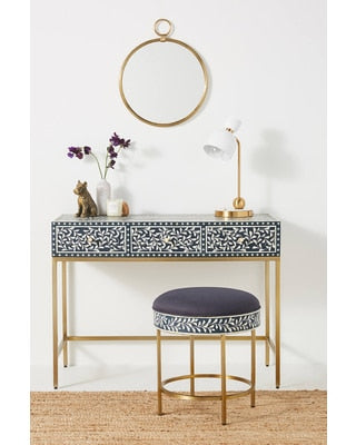• Dimensions: Vanity table: 42″W x 18″D x 31″H; Stool: 18″ Dia x 21″H