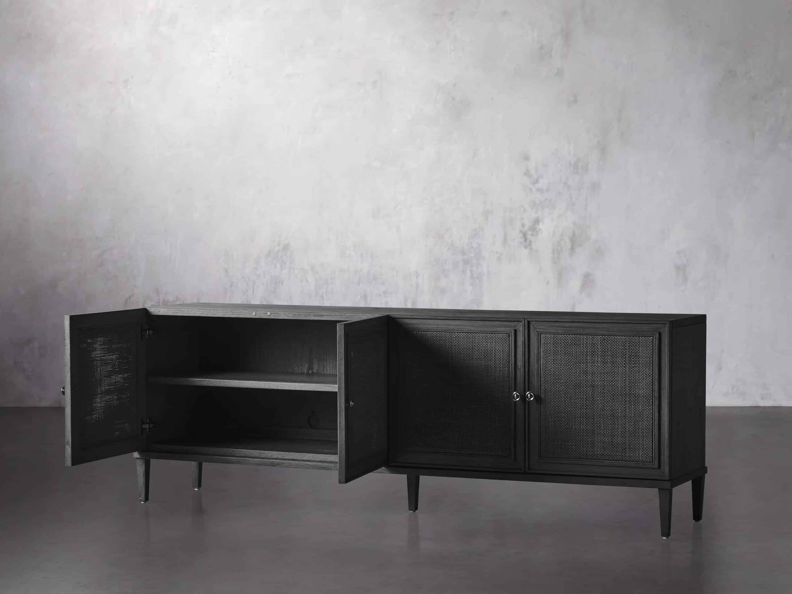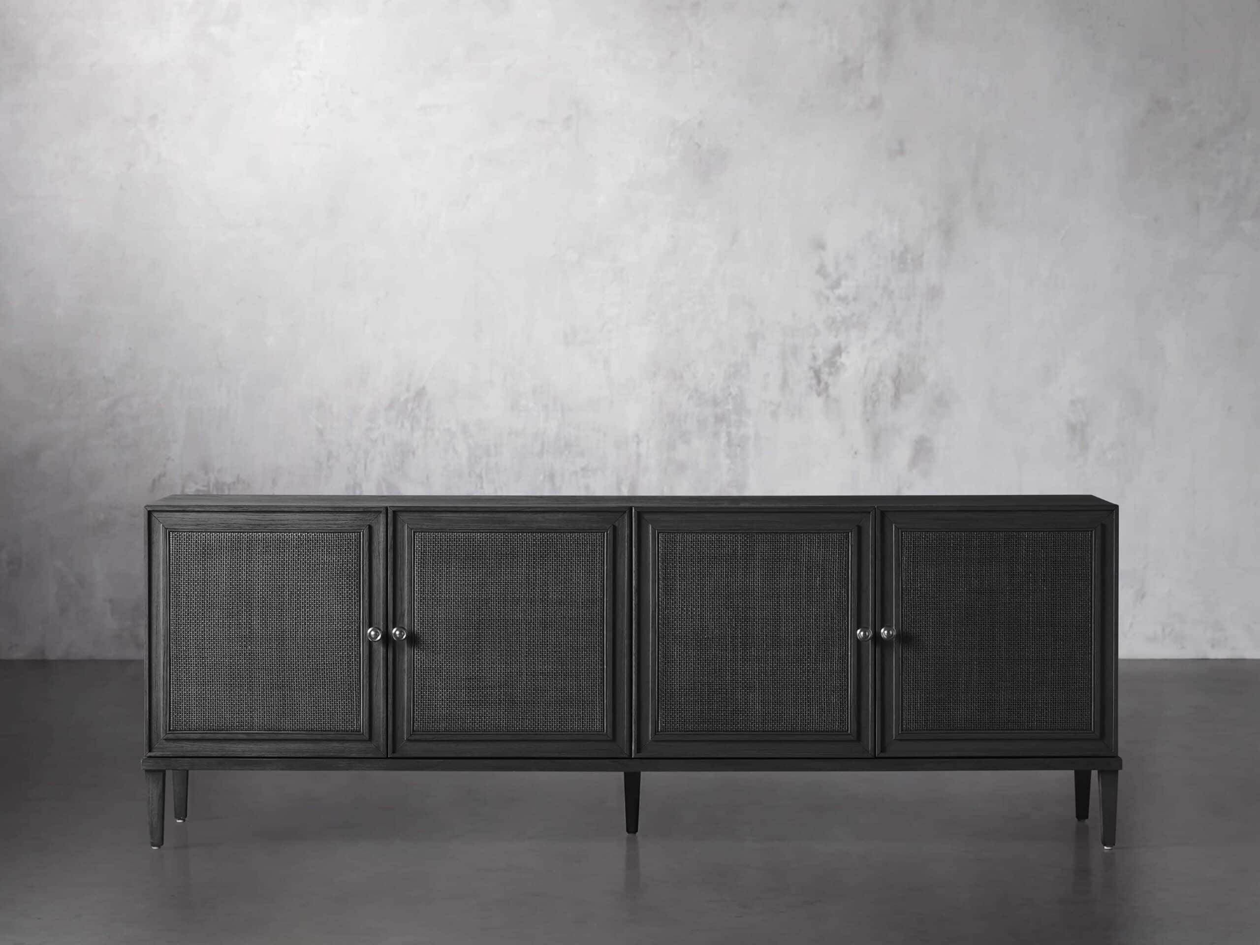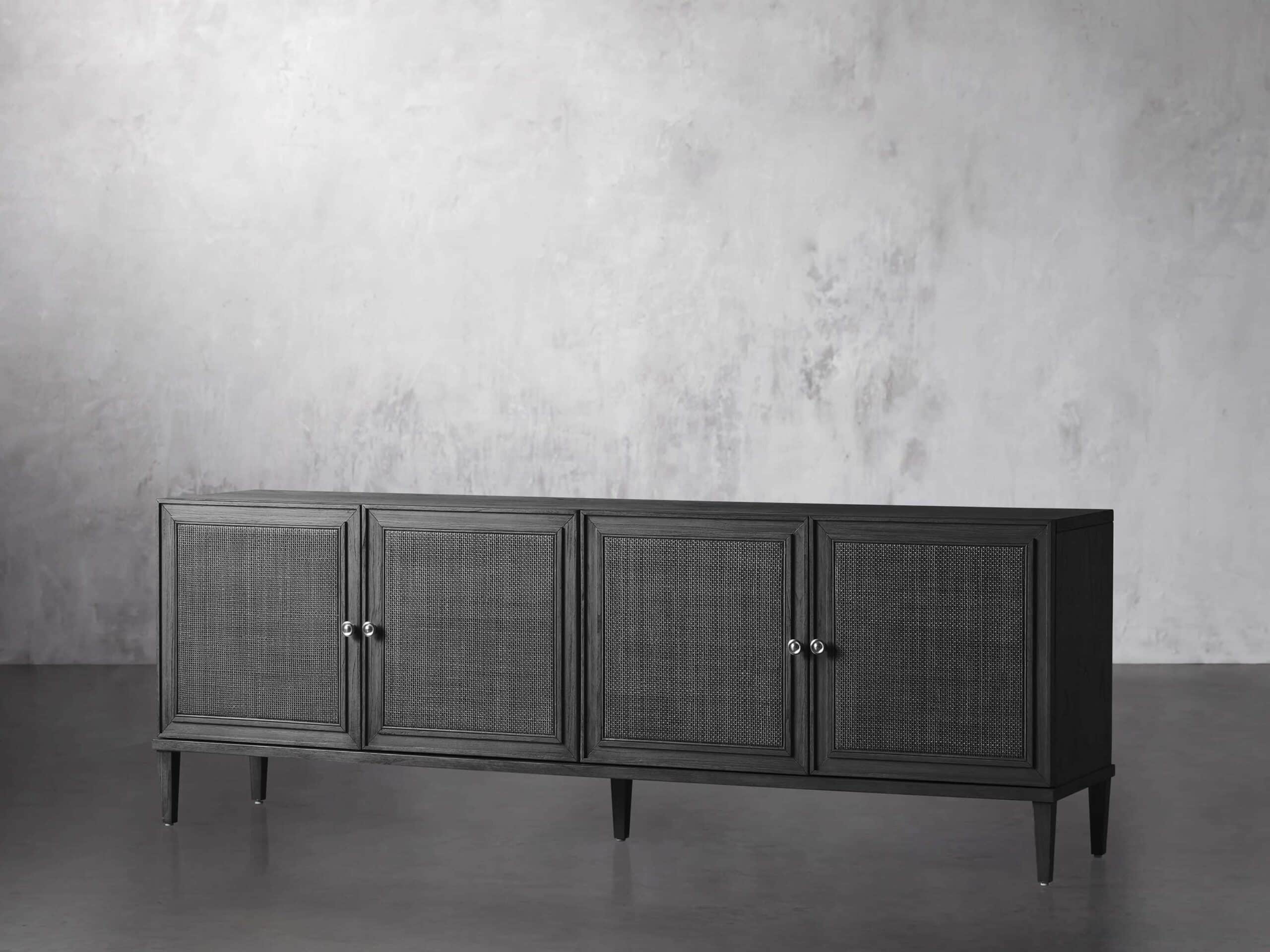 This media console is a sleek and contemporary piece that will elevate your entertainment area. With its sober design, this console adds a touch of modern sophistication. The low profile offers a minimalist look, while providing ample storage space for your media components. A perfect fusion of style and functionality.