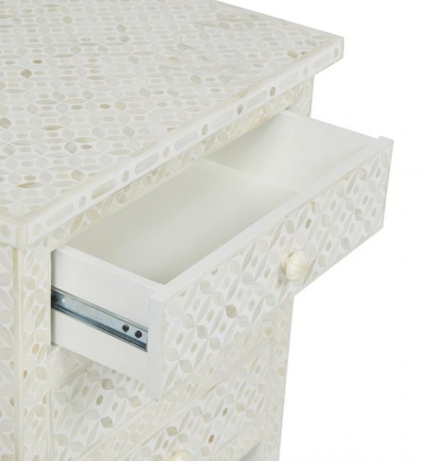 Each piece has been handcrafted in a process that can take weeks using honorably sourced Bone / Mother of Pearl. Delicately carved pieces of Bone/MoP have been individually inlaid onto a wooden frame in an elaborate pattern. Layers of colored resin are then used to fill around the bone/mop. Finally, the backside and inside areas are painted with the matching colors.