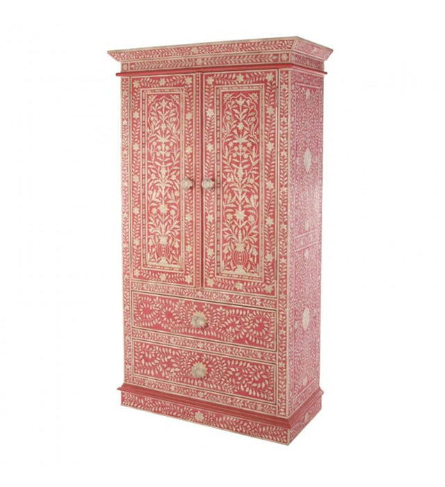 Each piece has been handcrafted in a process that can take weeks using honorably sourced Bone / Mother of Pearl. Delicately carved pieces of Bone/Mother of Pearl have been individually inlaid onto a wooden frame in an elaborate pattern. Layers of colored resin are then used to fill around the bone/mop. Finally, the backside and inside areas are painted with the matching colors.