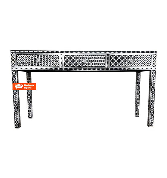 Geometric Mother of Pearl Inlay Console in Black