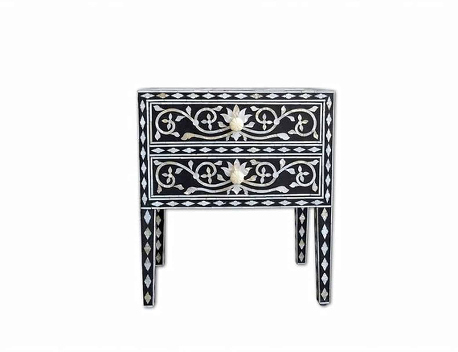 Each piece has been handcrafted in a process that can take weeks using honorably sourced Bone / Mother of Pearl. Delicately carved pieces of Bone/MoP have been individually inlaid onto a wooden frame in an elaborate pattern. Layers of colored resin are then used to fill around the bone/mop. Finally, the backside and inside areas are painted with the matching colors.