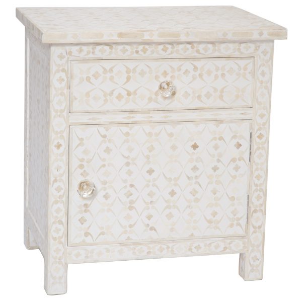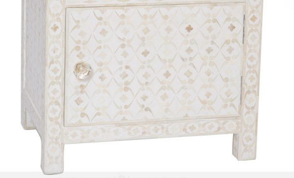 Each piece has been handcrafted in a process that can take weeks using honorably sourced Bone / Mother of Pearl. Delicately carved pieces of Bone/MoP have been individually inlaid onto a wooden frame in an elaborate pattern. Layers of colored resin are then used to fill around the bone/mop. Finally, the backside and inside areas are painted with the matching colors.