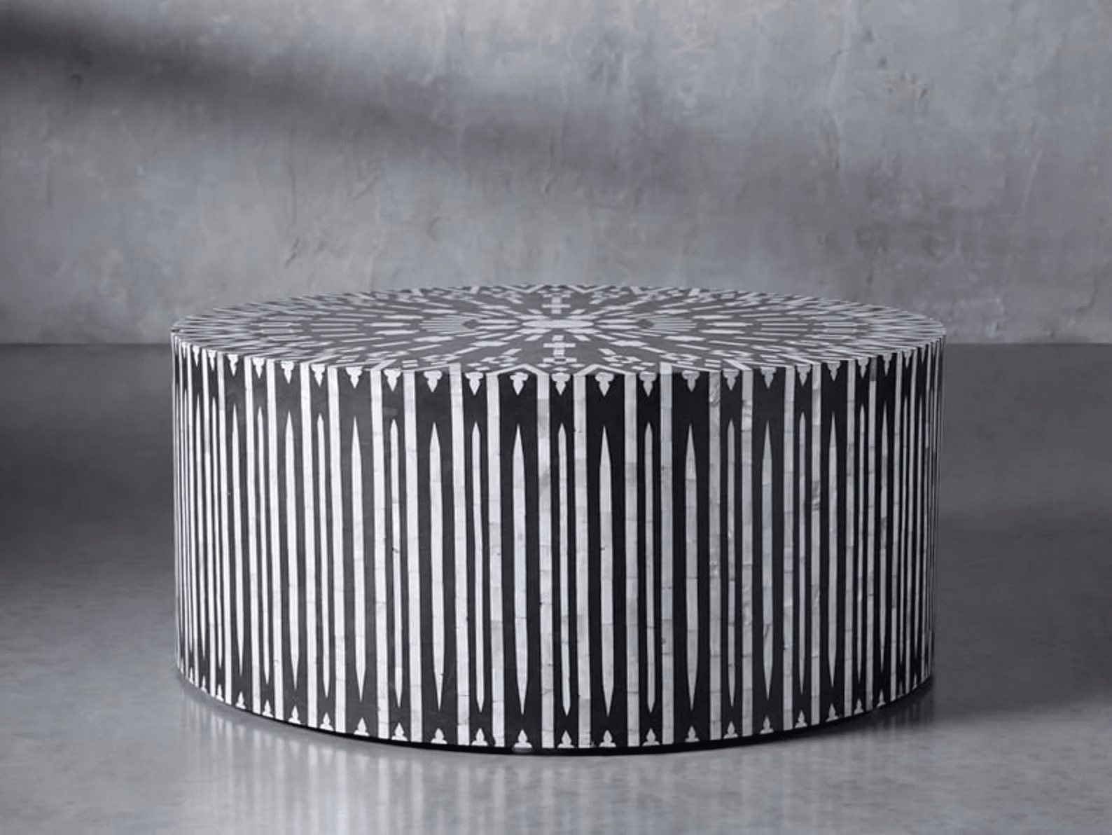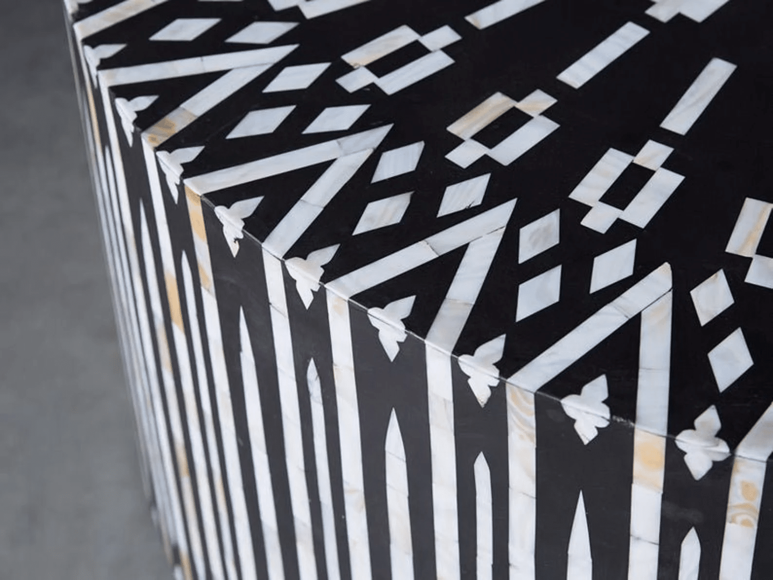 Ikat coffee table is a stunning blend of traditional and contemporary design. The intricate mother of pearl inlay patterns create a mesmerizing visual appeal, while the Ikat-inspired motifs add a touch of cultural charm. It’s a beautiful and unique piece that adds elegance to any living space.