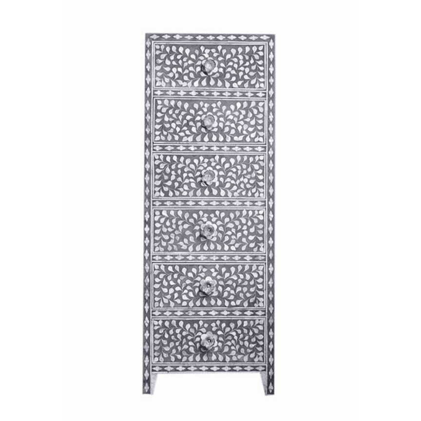 Each piece has been handcrafted in a process that can take weeks using honorably sourced Bone / Mother of Pearl. Delicately carved pieces of bone/MOP have been individually inlaid onto a wooden frame in an elaborate pattern. Layers of colored resin are then used to fill around the bone/mop. Finally, the backside and inside areas are painted with the matching colors.