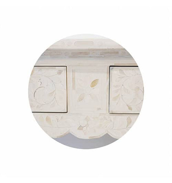 Each piece has been handcrafted in a process that can take weeks using honorably sourced Bone / Mother of Pearl. Delicately carved pieces of Bone/Mother of Pearl have been individually inlaid onto a wooden frame in an elaborate pattern. Layers of colored resin are then used to fill around the bone/mop. Finally, the backside and inside areas are painted with the matching colors.