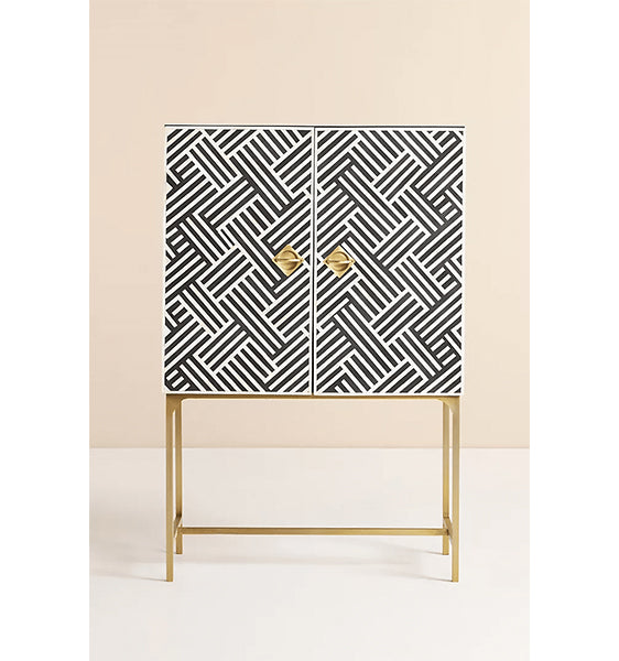 Striped Bone Inlay Bar Cabinet