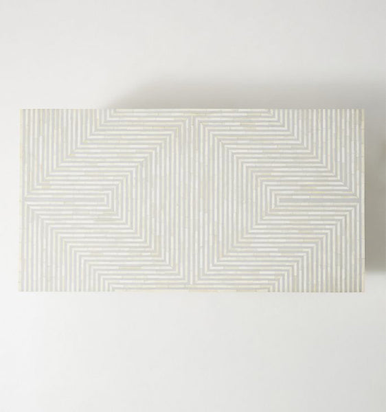 Each piece has been handcrafted in a process that can take weeks using honorably sourced Bone / Mother of Pearl. Delicately carved pieces of Bone/Mother of Pearl have been individually inlaid onto a wooden frame in an elaborate pattern. Layers of colored resin are then used to fill around the bone/mop. Finally, the backside and inside areas are painted with the matching colors.