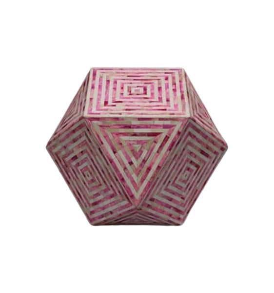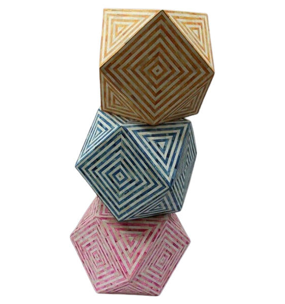 Each piece has been handcrafted in a process that can take weeks using honorably sourced Bone / Mother of Pearl. Delicately carved pieces of Bone/Mother of Pearl have been individually inlaid onto a wooden frame in an elaborate pattern. Layers of colored resin are then used to fill around the bone/mop. Finally, the backside and inside areas are painted with the matching colors.