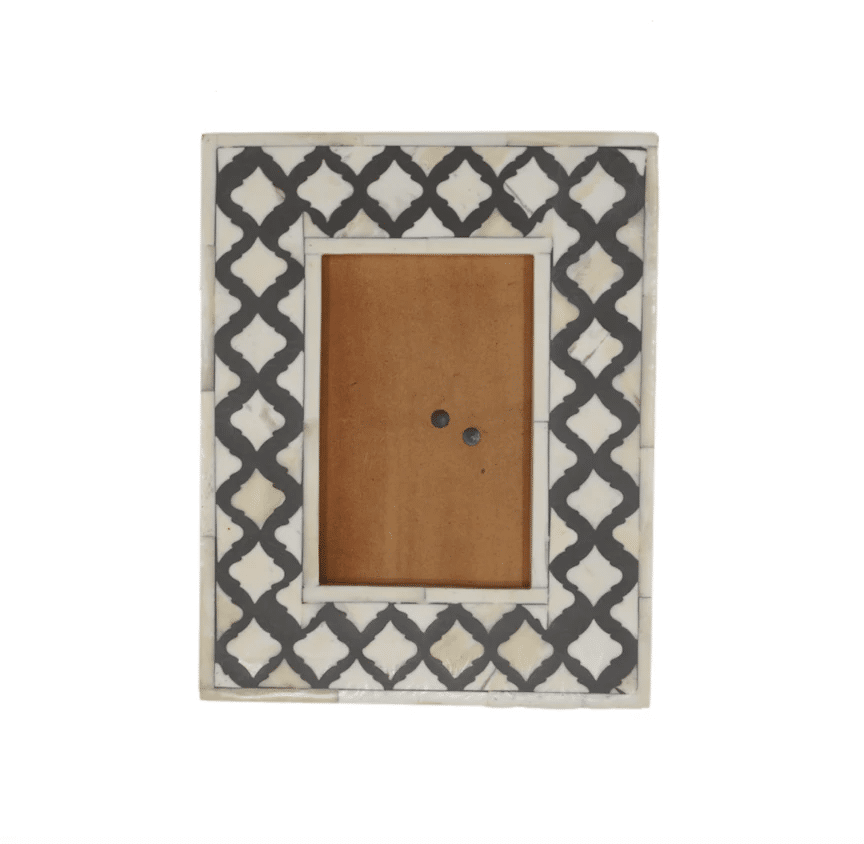 Each piece has been handcrafted in a process that can take weeks using honorably sourced Bone / Mother of Pearl. Delicately carved pieces of Bone/Mother of Pearl have been individually inlaid onto a wooden frame in an elaborate pattern. Layers of colored resin are then used to fill around the bone/mop. Finally, the backside and inside areas are painted with the matching colors.