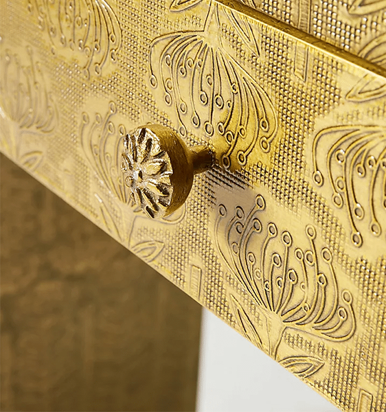 - Hand-embossed Brass Console