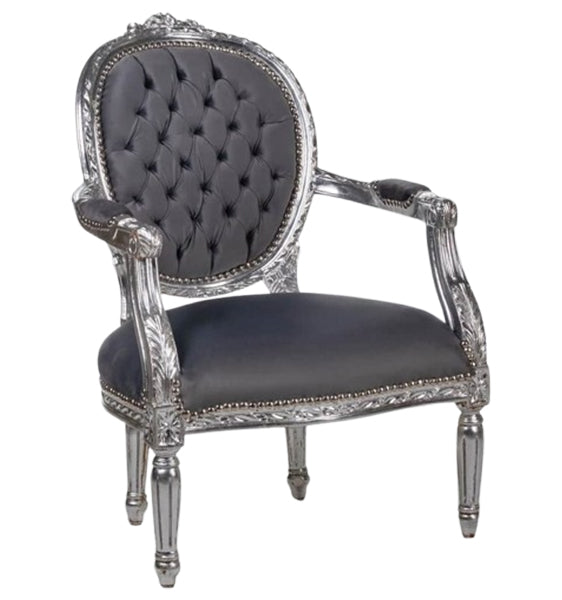 Variations in the natural product color, pattern, and shade are inherent and unique characteristics to be expected with this German Silver Chair. No two tables are ever exactly alike, with thousands of intricate pieces hand-laid to complete this delightful masterpiece. Each product is unique and may have different variations with anomalies due to handmade in nature. Wood may show small splits, knots, or other organic features that will add character to the piece without impacting its quality.