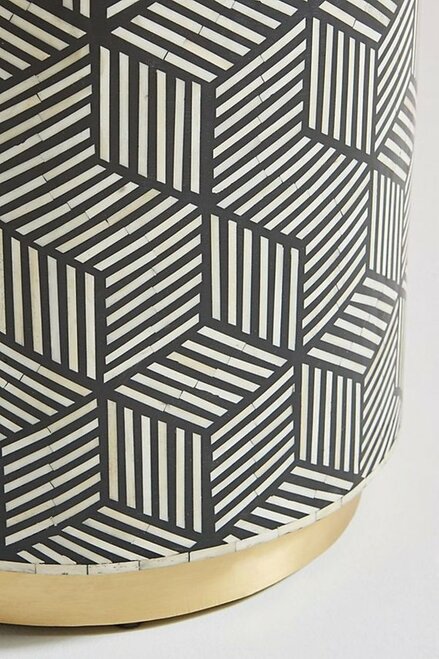 Bone Inlay Drum / Side table in Black with Brass Polished Base