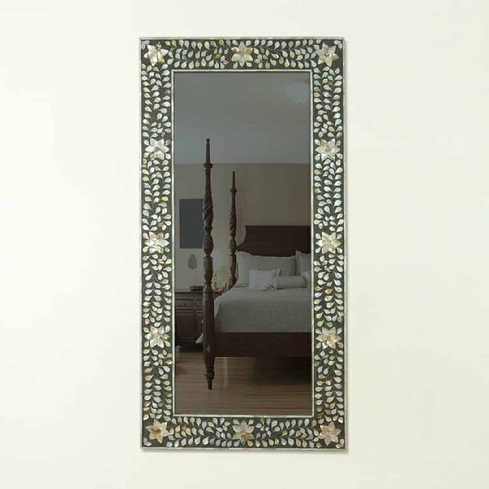 Rectangular Floral Mother of Pearl Inlay Mirror in Black