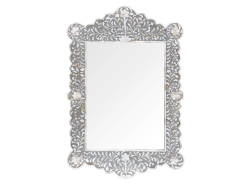 Each piece has been handcrafted in a process that can take weeks using honorably sourced Bone / Mother of Pearl. Delicately carved pieces of Bone/Mother of Pearl have been individually inlaid onto a wooden frame in an elaborate pattern. Layers of colored resin are then used to fill around the bone/mop. Finally, the backside and inside areas are painted with the matching colors.