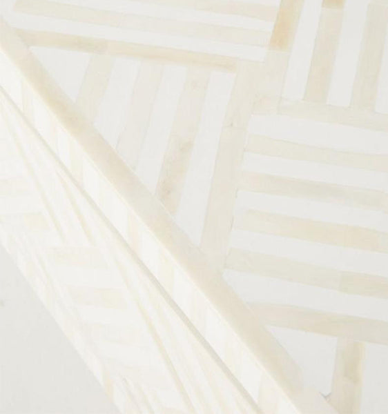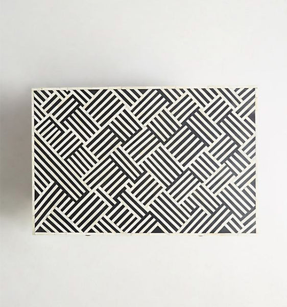 Each piece has been handcrafted in a process that can take weeks using honorably sourced Bone / Mother of Pearl. Delicately carved pieces of Bone/Mother of Pearl have been individually inlaid onto a wooden frame in an elaborate pattern. Layers of colored resin are then used to fill around the bone/mop. Finally, the backside and inside areas are painted with the matching colors.