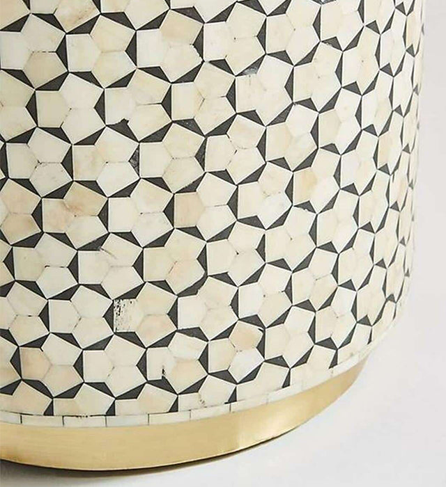 Each piece has been handcrafted in a process that can take weeks using honorably sourced Bone / Mother of Pearl. Delicately carved pieces of Bone/Mother of Pearl have been individually inlaid onto a wooden frame in an elaborate pattern. Layers of colored resin are then used to fill around the bone/mop. Finally, the backside and inside areas are painted with the matching colors.